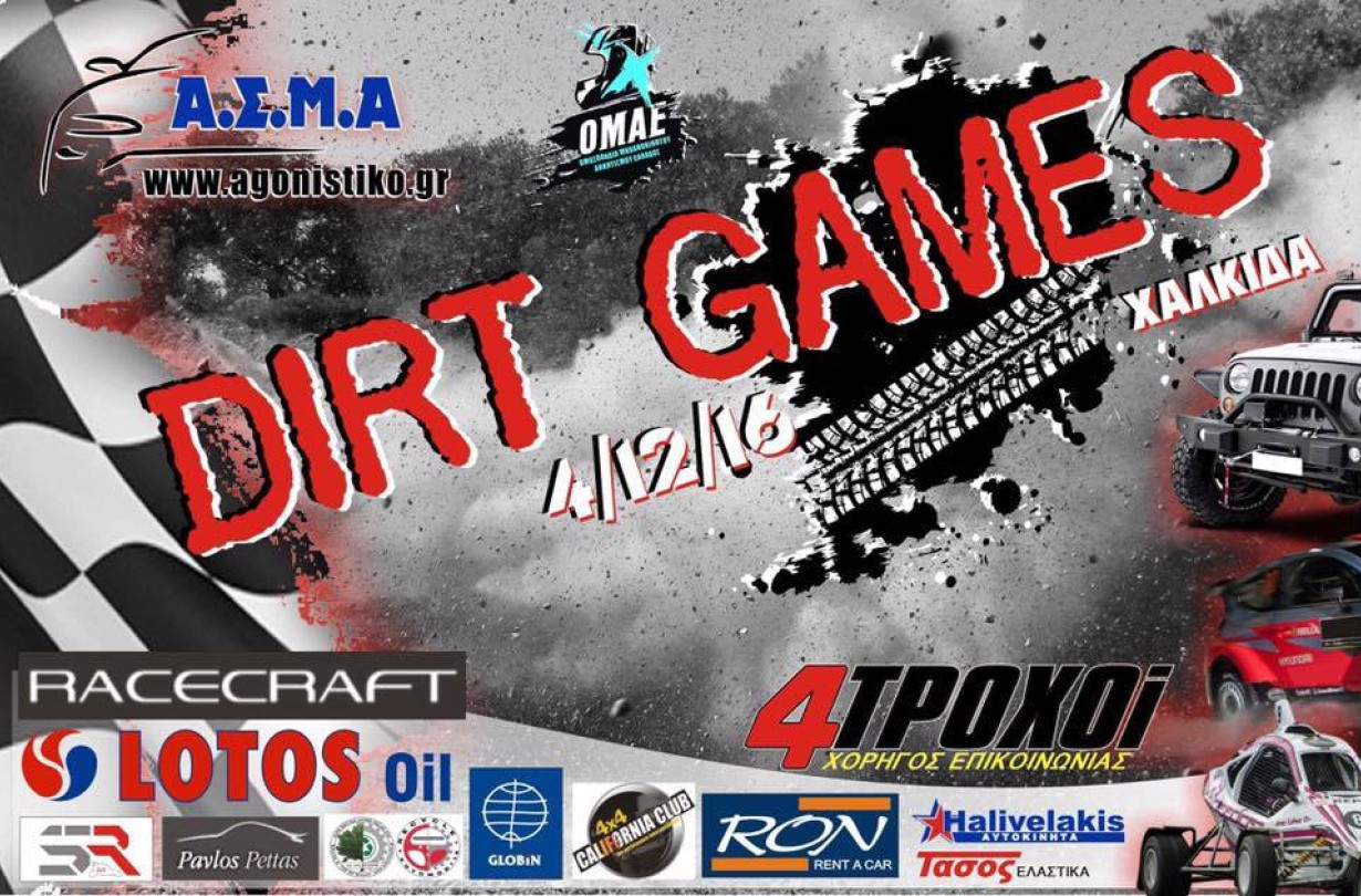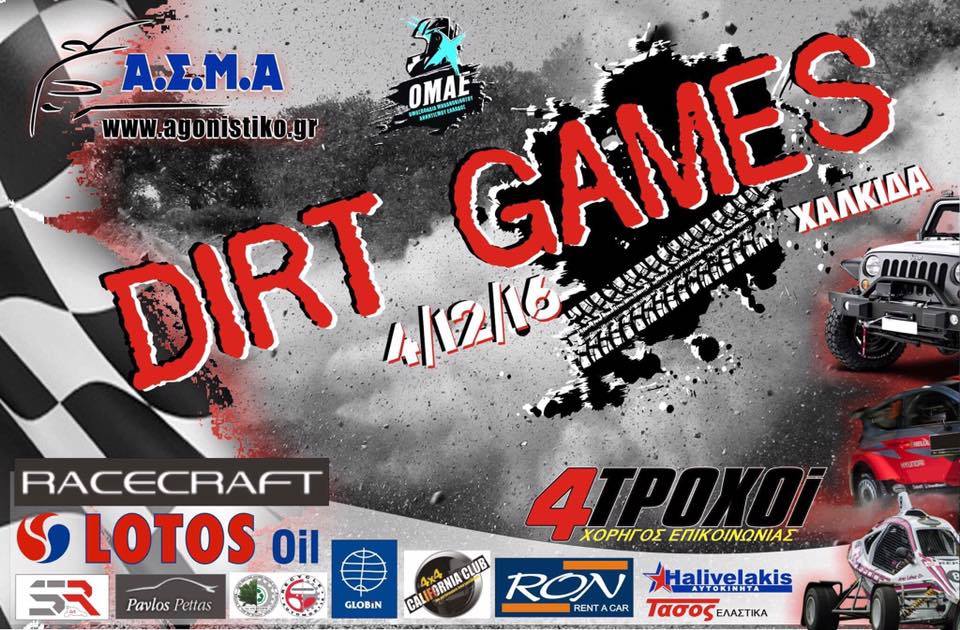 Το Αγωνιστικό Σωματείο Μηχανοκίνητου Αθλητισμού (Α.Σ.Μ.Α.) σε συνεργασία με την Περιηγητική Λέσχη Ευρίπου 4×4 και την Αθλητική Μοτοσικλετιστική Λέσχη Χαλκίδας (Α.Μ.ΛΕ.Χ.) διοργανώνει την Κυριακή 4 Δεκεμβρίου το 1ο Dirt Games στη χωμάτινη πίστα Μηχανοκίνητου Αθλητισμού του Δήμου Χαλκίδος.