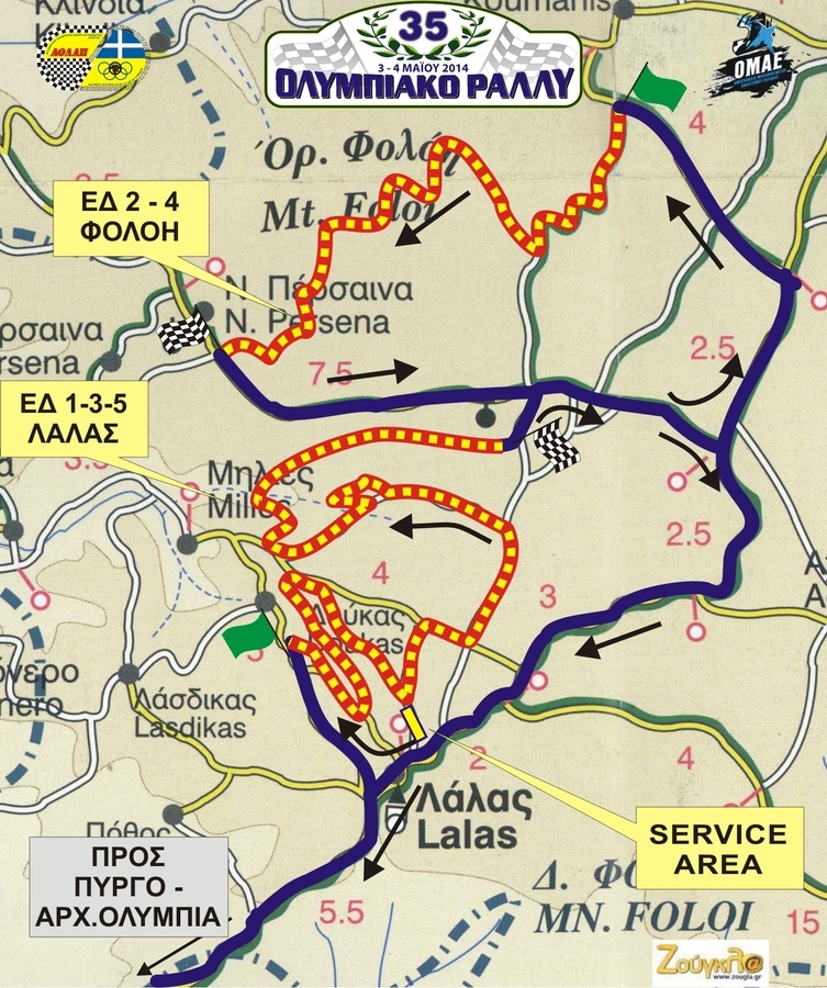 Στο 35ο Ολυμπιακό Ράλι η δράση θα ξεκινήσει στις 9:00 το πρωί της ερχόμενης Κυριακής. Τα 28 πληρώματα θα περάσουν τρεις φορές από την ειδική διαδρομή Λαλάς και δύο από την Ε.Δ. Φολόη, διανύοντας συνολικά 80 km σε αγωνιστικό ρυθμό σε χωμάτινο τερέν.