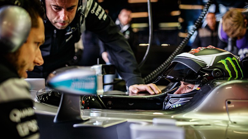 O τρεις φορές παγκόσμιος πρωταθλητής MotoGP πήρε το τιμόνι της πρωταθλήτριας Mercedes W05 Hybrid
