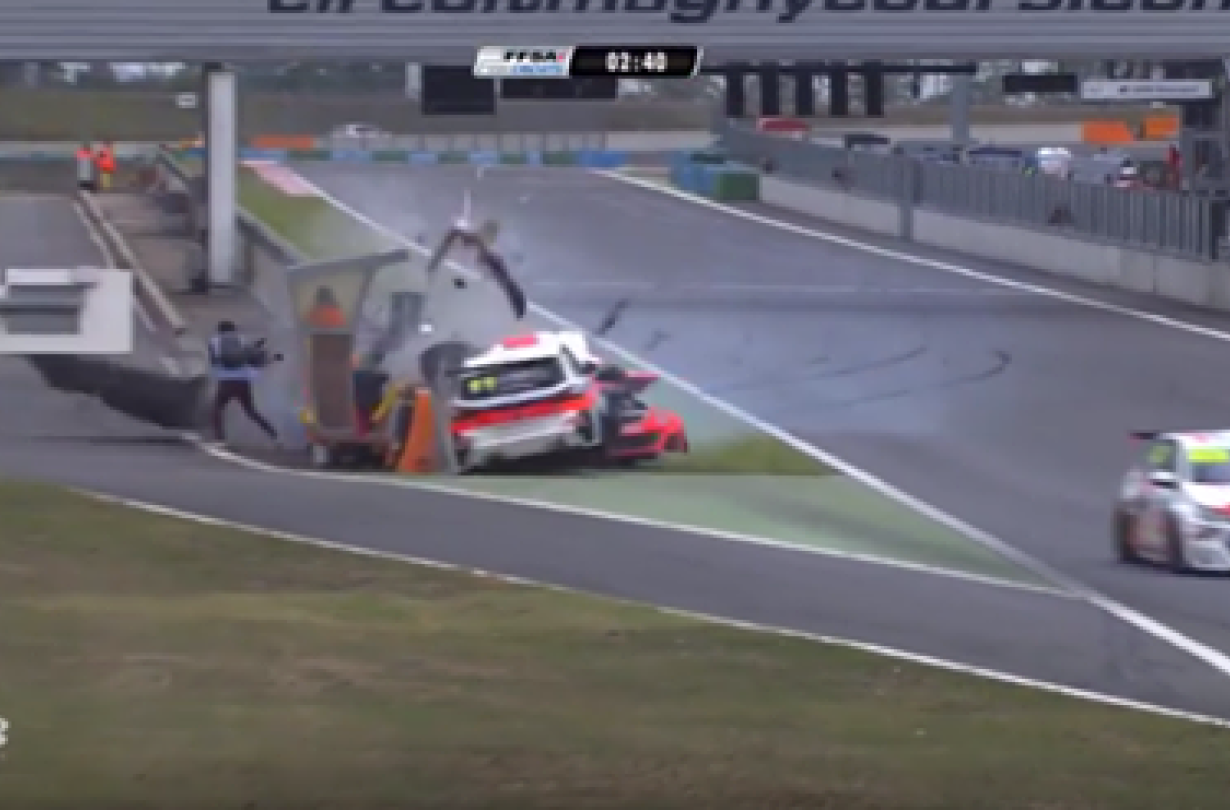 Τα δύο αυτοκίνητο ακούμπησαν και στη συνέχεια ανεξέλεγκτα έπεσαν πάνω στο προστατευτικό τοίχο στην έξοδο των πιτ.