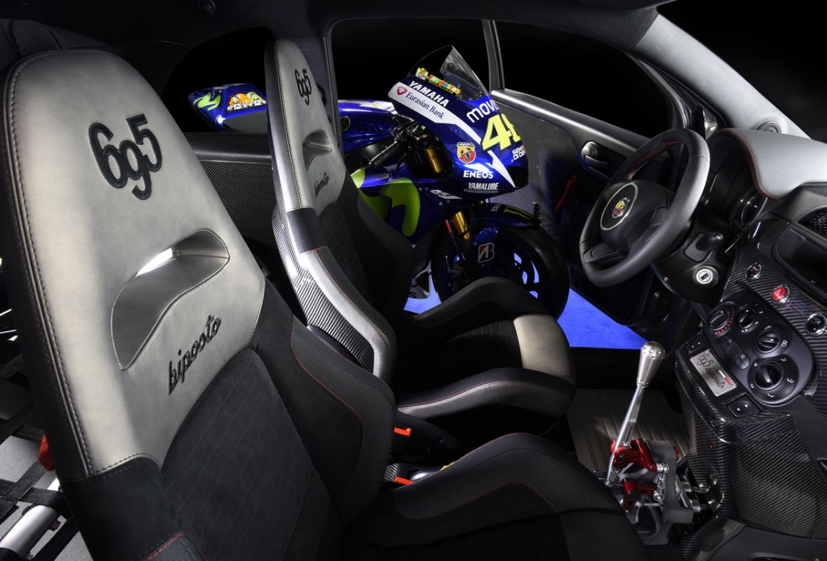 Η ναυαρχίδα της χορηγίας στη Movistar Yamaha MotoGP είναι το 695 Biposto, το σύγχρονο σύμβολο της μάρκας, που εκπροσωπεί τον ιδανικό συνδυασμό των αυτοκινήτων που προορίζονται για το δρόμο και τους αγώνες, τη «μεταφορά» των αγωνιστικών συγκινήσεων σ' ένα νόμιμο αυτοκίνητο για καθημερινή χρήση. Το Abarth 695 Biposto είναι το αποτέλεσμα αυτής της συναρπαστικής αναζήτησης: 190 ίπποι από τον κινητήρα 1.4 T-Jet (τον πιο δυνατό που τοποθετήθηκε ποτέ σε Abarth), βάρος μόλις 997 kg, με αναλογία βάρους/ίππο 5,2 kg/HP (την καλύτερη στην κατηγορία) και επιτάχυνση από 0 ως 100 χλμ./ώρα σε μόλις 5.9'', όπως επίσης και κορυφαία ευελιξία χάρη στα φαρδύτερα μετατρόχια και το μικρών διαστάσεων αμάξωμα. Επίσης είναι το πρώτο αυτοκίνητο δρόμου στον κόσμο αυτήν τη στιγμή στην κατηγορία του, που είναι εξοπλισμένο με επιλογέα κιβωτίου με dog rings.