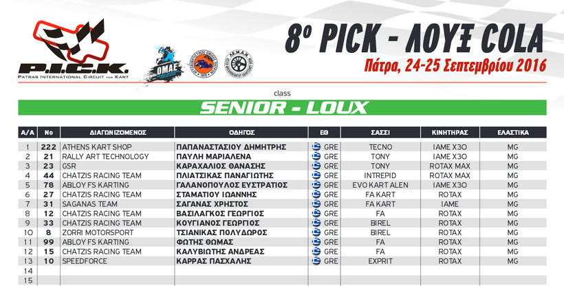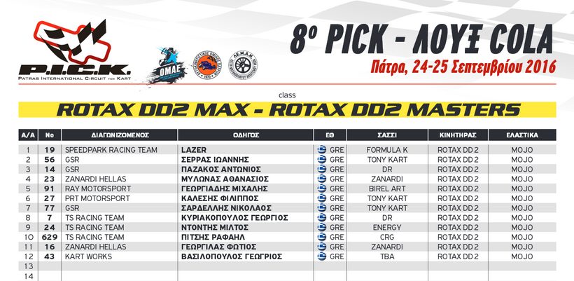 Οι δρόμοι του κέντρου της Πάτρας, γύρω από την πλατεία Γεωργίου κλείνουν. Διαμορφώνεται η χάραξη της πίστας και ο χώρος των pits στο εσωτερικό της πλατείας. Η διάθεση είναι πανηγυρική. Ο κόσμος αγκαλιάζει το event, συμμετέχει στην γιορτή, έρχεται να γνωρίσει τους αγώνες καρτ, οι θεατές προσέρχονται κατά χιλιάδες για να χειροκροτήσουν τους οδηγούς που δίνουν θεαματικές μάχες. Αυτό είναι που κάνει το PICK τόσο ιδιαίτερο.