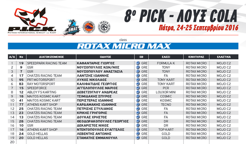 Οι συμμετοχές, το πρόγραμμα, η τηλεοπτική μετάδοση, οι χορηγοί… Όλα είναι έτοιμα για το 8ο PICK, τον αγώνα καρτ που διοργανώνεται στο κέντρο της Πάτρας.