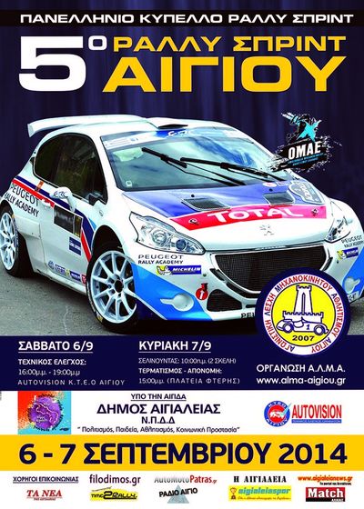 Το 5o Rally Sprint Αιγίου, το οποίο προσμετρά στο Πανελλήνιο Κύπελλο Ασφάλτινων Ράλι 2014, θα διεξαχθεί στην Ε.Δ. Σελινούντας την Κυριακή 7 Σεπτεμβρίου.