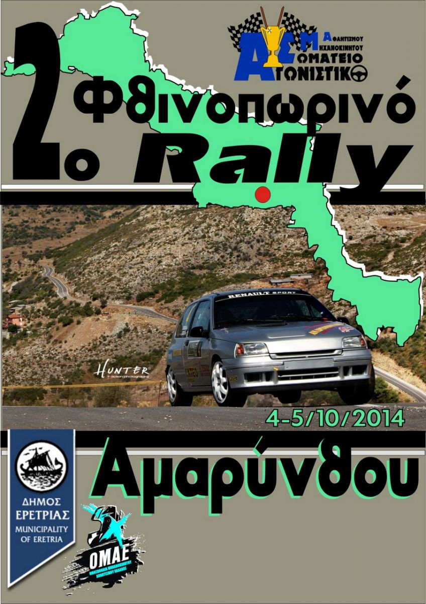 Το Φθινοπωρινό Ράλι Αμαρύνθου διοργανώθηκε για πρώτη φορά το 2013, και εκτιμήθηκε από τους αγωνιζόμενους τόσο ώστε φέτος να συγκεντρώσει περισσότερες συμμετοχές.