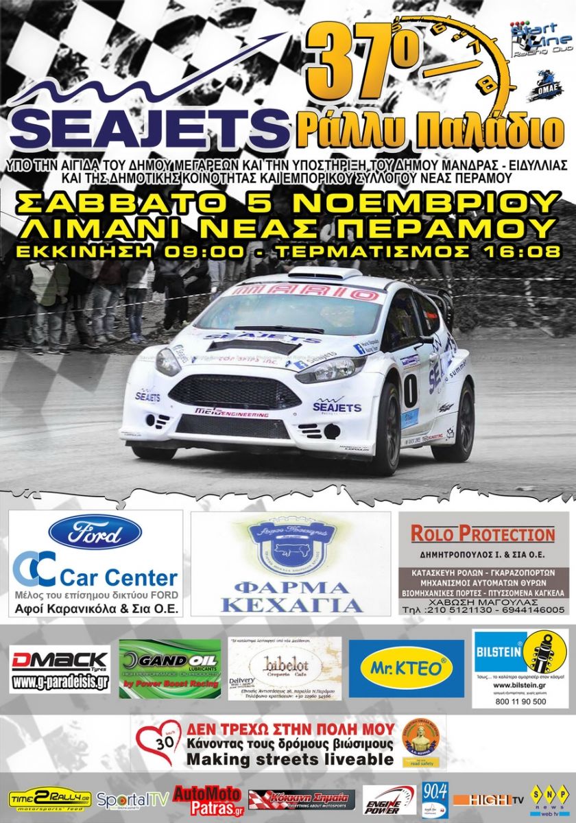 Τρεις μέρες απομένουν για την διεξαγωγή του Seajets 37ου Ράλι Παλάδιο, που θα έχει ως επίκεντρο την Ν. Πέραμο Μεγάρων και διοργανώνεται από το Αθλητικό Σωματείο Start Line. Ο αγώνας έχει ως Χορηγό Ονομασίας την εταιρεία Seajets, που βρίσκεται πάντα δίπλα στον Ελληνικό Μηχανοκίνητο Αθλητισμό.