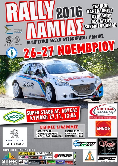 Ο Διοικητικός και Τεχνικός Έλεγχος θα φιλοξενηθεί στις εγκαταστάσεις του Karellis Group (Επίσημος Διανομέας και Επισκευαστής Citroen, Isuzu, Jeep, Lancia, Peugeot, Skoda στη Λαμία) το Σάββατο 26 Νοεμβρίου, ενώ επίκεντρο του αγώνα σε όλη τη διάρκεια του διημέρου θα είναι ο χώρος έξω από την Πανελλήνια Έκθεση Λαμίας (Π.Ε.Λ.), όπου θα στεγαστούν το Service Park και το Park Ferme. Η Γραμματεία και το Γραφείο Τύπου θα βρίσκονται δίπλα στην έξοδο του Service Park, στις εγκαταστάσεις της εταιρείας Ντότσικας ΕΤΑΣΕ-ENEOS, που υποστηρίζει τον αγώνα ως Χορηγός. Ακόμη, Χορηγοί του αγώνα είναι οι εταιρείες Peugeot Autokar, Vento Cafe και Yacco-Λιπαντικά. Ο χώρος της Τελετής Απονομής Κυπέλλων στους νικητές αλλάζει και θα φιλοξενηθεί στον Πολυχώρο Πολιτεία (Τουριστικό Περίπτερο Αγίου Λουκά), όπου θα προσφερθεί δωρεάν γεύμα σε όλα τα πληρώματα.