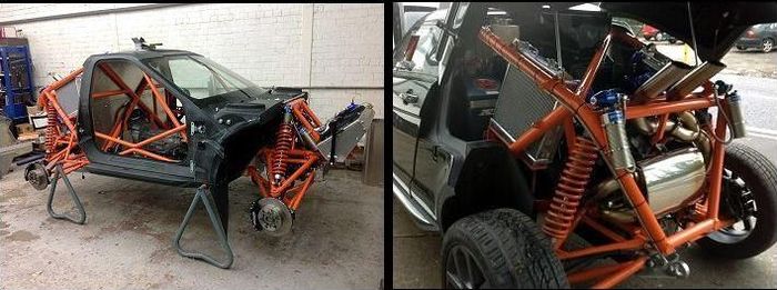 Συγκεκριμένα είναι 10 cm πιο στενό, με περίπου 50 cm μικρότερο μήκος, αλλά μεγαλύτερο μεταξόνιο. Κάτω από το όμορφο αμάξωμα κρύβεται το σωληνωτό πλαίσιο «R5» της Milner. Η ανάρτηση αποτελείται από διπλά ψαλίδια σε κάθε τροχό, με τις τεράστιες διαδρομές που απαιτούνται στους αγώνες cross country.