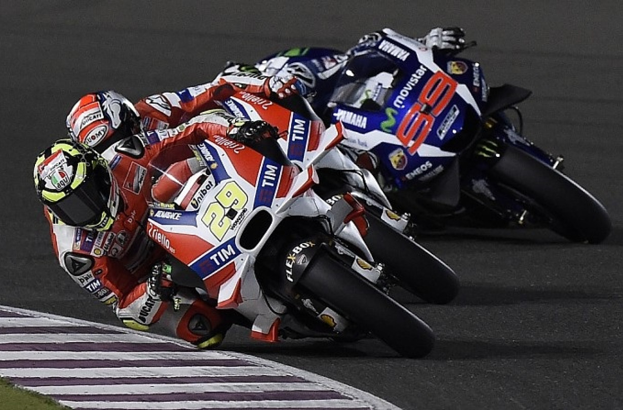Ο Iannone και ο team-mate του, Andrea Dovizioso, πήραν την 4η και την 6η θέση αντίστοιχα στη σειρά εκκίνησης του πρώτου αγώνα της σεζόν, στο Κατάρ. Εκμεταλλεύτηκαν όμως την υπεροχή σε ιπποδύναμη του V4 της Ducati για να ανέβουν στην 1η και τη 2η θέση από το δεύτερο γύρο.