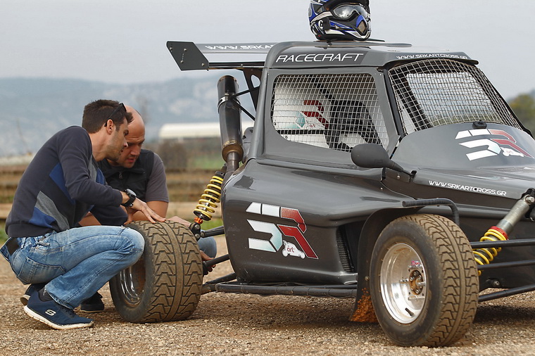 Αν ξέχασα να το αναφέρω νωρίτερα, να το πω πριν να είναι αργά: Από χώμα δεν έχω ιδέα. Έχω οδηγήσει μόνο συμβατικά αυτοκίνητα. Μάλιστα τα σύγχρονα SUV και crossover φοράνε συνήθως σπορ λάστιχα για άσφαλτο. Και μόλις στρίψεις το τιμόνι στο χώμα, πας ευθεία. Αυτό εδώ, καμία σχέση. Και δεν φοράει κάποιο πολύ «χωμάτινο» λάστιχο. Το πέλμα έχει αρκετά πυκνή χάραξη, κατάλληλη για τις πίστες autocross που είναι 60% άσφαλτος και 40% χώμα.