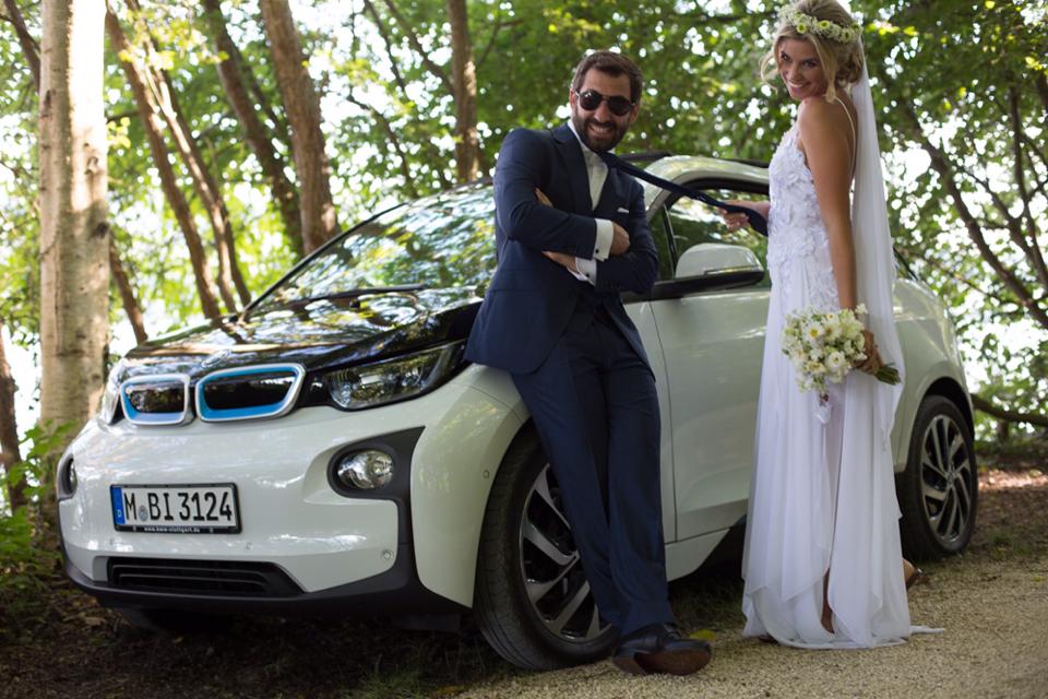 Mάλιστα αμέσως μετά την τελετή φωτογραφήθηκαν μπροστά στο αυτοκίνητο με το οποίο πήγαν στην εκκλησία και το οποίο δεν ήταν κάποια κάμπριο 6άρα", αλλά ένα BMW i3.