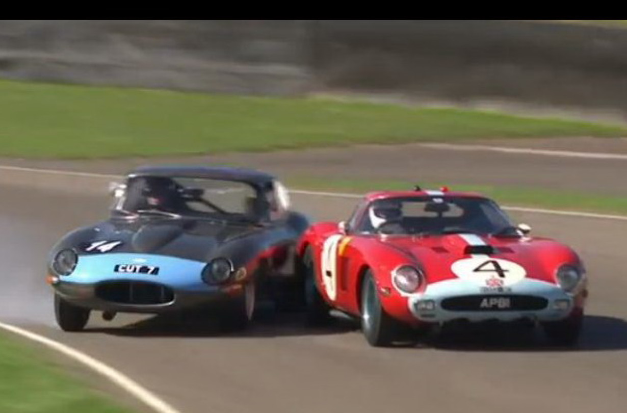 Ο οδηγός της συγκεκριμένης E-type χάνει τον έλεγχο σε μια δεξιά στροφή της πίστας του Goodwood, και παρά τρίχα να χτυπήσει μια Ferrari 250 GTO των 30 εκατομμυρίων και να τη στείλει στην μπαριέρα.