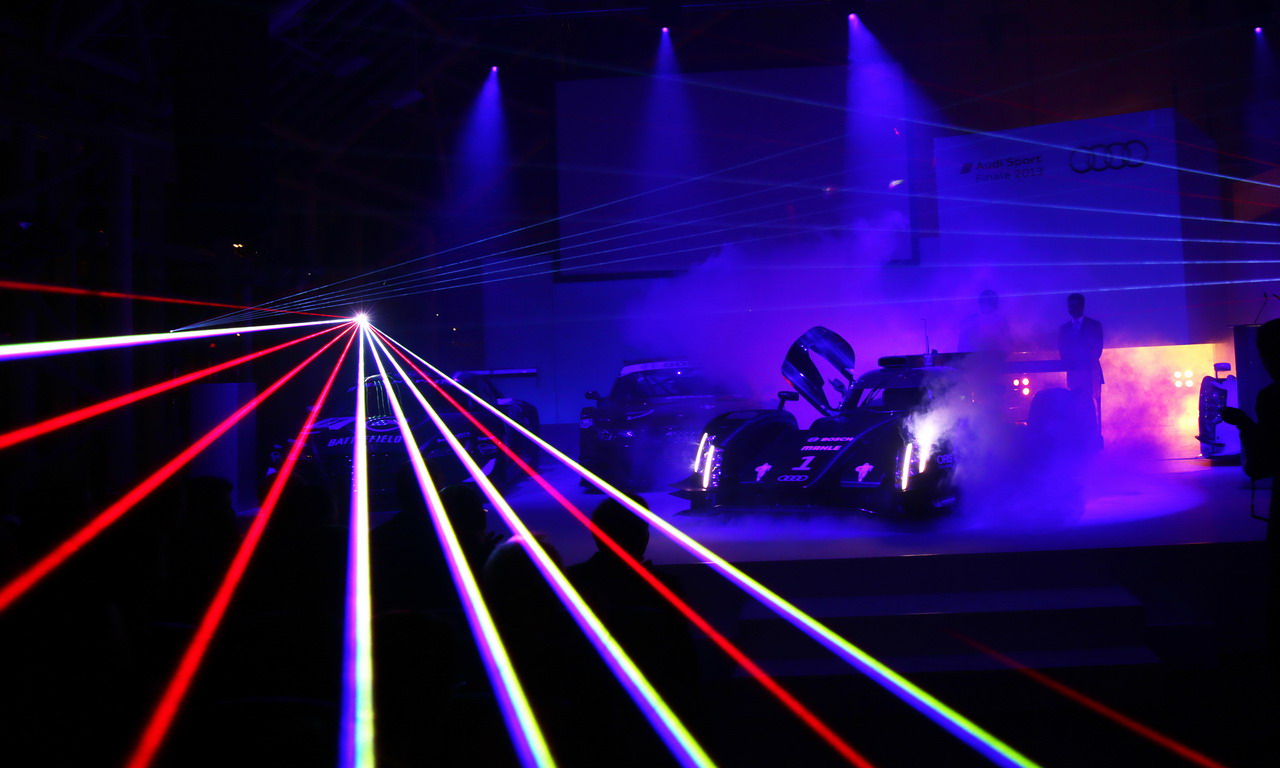 Τα καινοτόμα φώτα λέιζερ, που οι 500 καλεσμένοι στην εκδήλωση “Audi Sport Finale” είχαν την ευκαιρία να γνωρίσουν ζωντανά για πρώτη φορά, συμπληρώνουν τους κύριους προβολείς LED του νέου Audi R18 e-tron quattro. Μια μπλε ακτίνα λέιζερ φωτίζει από πίσω ένα φακό από κίτρινο κρύσταλλο φωσφόρου, μέσω του οποίου εκπέμπεται μια δέσμη φωτός. Η νέα πηγή φωτός παρέχει ακόμη πιο ομοιογενή φωτισμό του δρόμου.