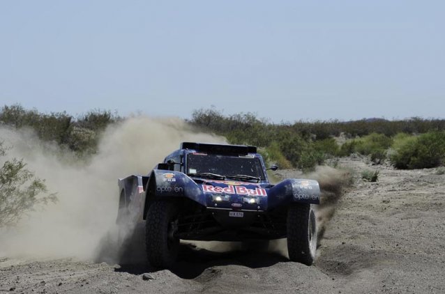 Πίσω από το ΜΙΝΙ του Stephan Peterhansel, με πολύ μικρή διαφορά (28 μόλις δευτερόλεπτα) ανέβηκε και ακολουθεί ο Carlos Sainz με το Buggy της Red Bull και στην τρίτη θέση βρίσκεται ο Nasser Al Attiyah με το άλλο ΜΙΝΙ με διαφορά 4 λεπτών και 10 δευτερολέπτων από τον πρωτοπόρο Γάλλο.