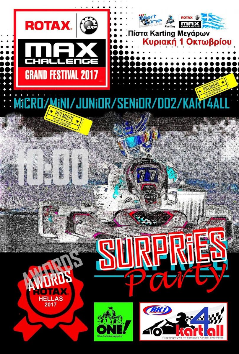 Όλο το πρόγραμμα του 1ου Rotax Festival 2017 αποσκοπεί στην ευχαρίστηση των οδηγών, οι οποίοι χωρίς βαθμολογικό άγχος θα απολαύσουν ένα αγώνα γιορτή, μία αναμέτρηση-προετοιμασία για τον επόμενη χρονιά. Τα Βραβεία Rotax, θα είναι μία ξεχωριστή λαμπρή εκδήλωση του 1ου Rotax Festival 2017, αφού θα τιμηθούν άνθρωποι, ομάδες και σωματεία που έχουν συμβάλει στην διαμόρφωση της ιστορίας της Rotax στην Ελλάδα.