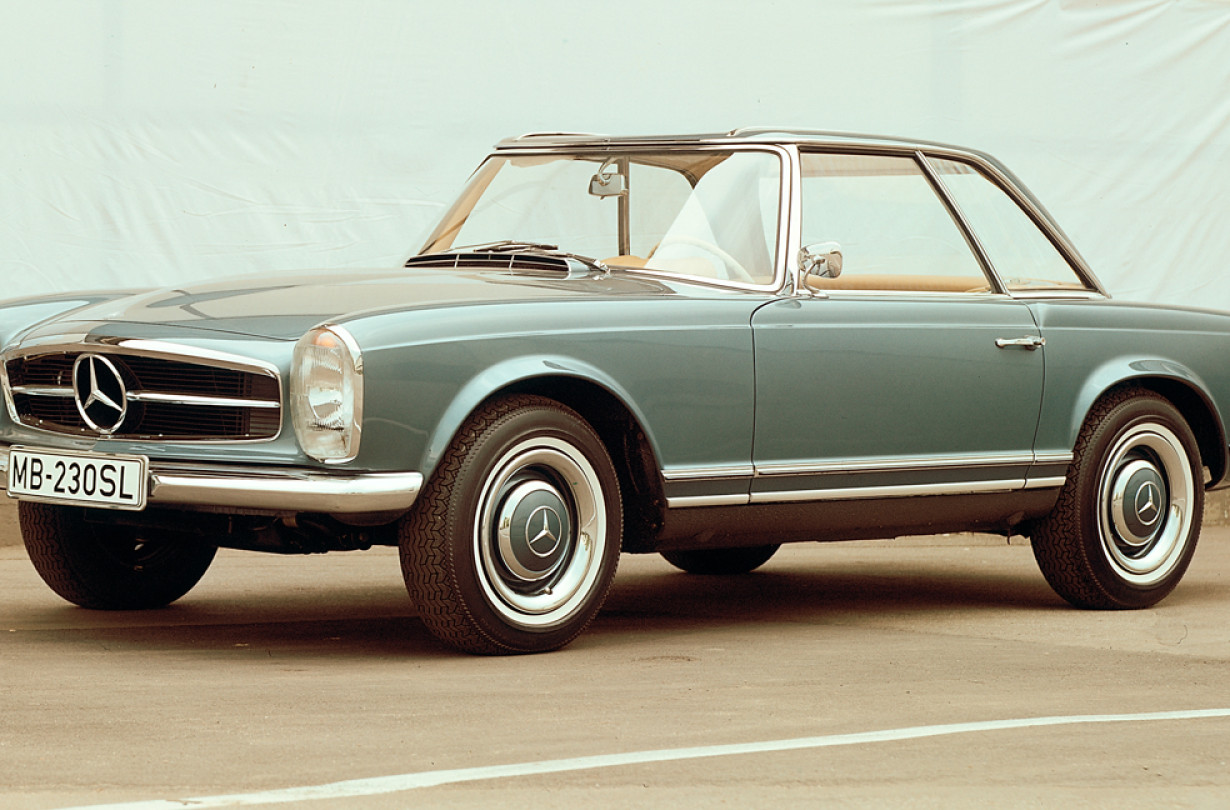 Mε την εμβληματική φυσιογνωμία χάρη στην οροφή-παγόδα –εξ ου και η ανεπίσημη προσωνυμία- η 50ετής 230 SL δεν έχει ακόμα και σήμερα ούτε μια ρυτίδα.