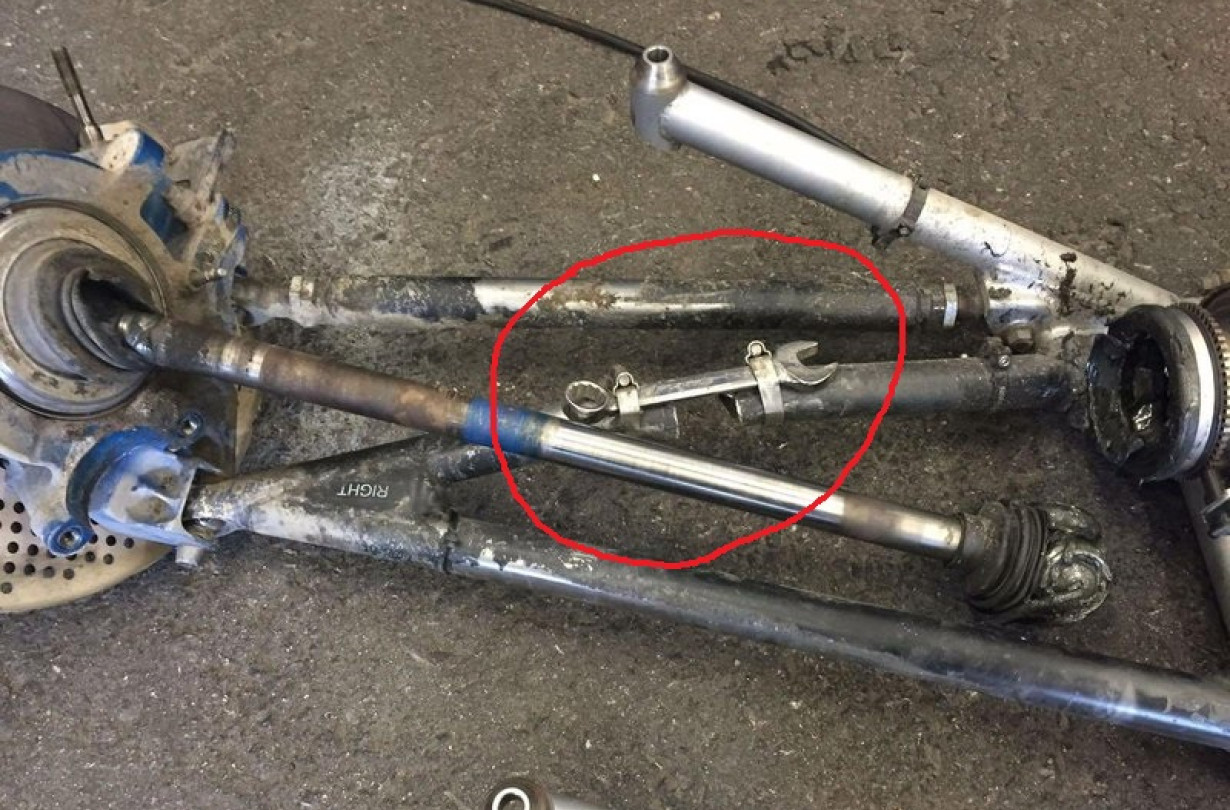 Περνώντας από μια γρήγορη αριστερή στην Ouninpohja το 2015, o Elfyn Evans ανοίχτηκε λίγο παραπάνω στην έξοδο, κάνοντας ζημιά στην πίσω δεξιά ανάρτηση του Ford Fiesta WRC. Μη έχοντας άλλα υλικά, για να ενώσουν έναν σπασμένο βραχίονα της πίσω ανάρτησης χρησιμοποίησαν ένα γερμανικό κλειδί για ενώσουν μία σπασμένη ράβδο, δένοντάς το με μεταλλικούς σφιγκτήρες.