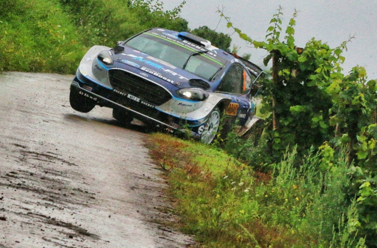 O Ott Tanak με το M-Sport Fiesta φόρεσε ένα μίγμα λάστιχων βροχής και μαλακών σλικ και ήταν ο πιο γρήγορος και στις δύο ειδικές, παρότι παρά λίγο να βγει από το δρόμο σε μια φουρκέτα της Mittelmosel (δείτε τη φωτογραφία του wrc.com). Πλησίασε τον Mikkelsen στα 0,9” και στη συνέχεια τον πέρασε κερδίζοντας και την Grafschaft.