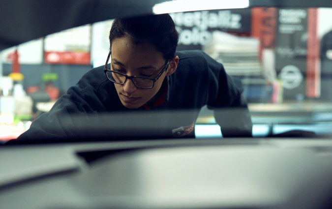 Σε μια αντιπροσωπεία της Nissan λίγο έξω από τη Βοστώνη, μία τεχνικός της Nissan δεν αλλάζει απλώς…