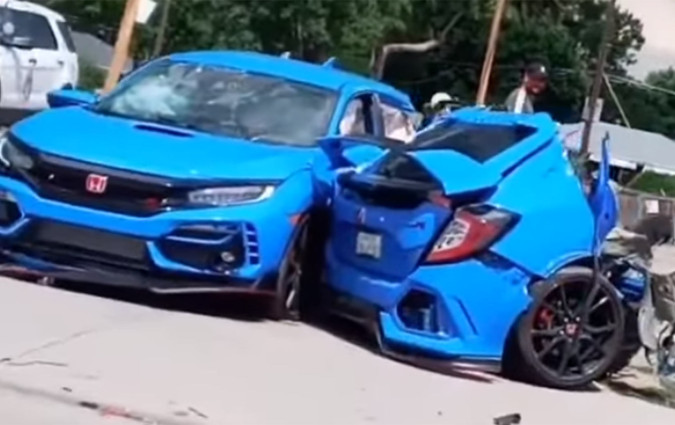 Ένα μπλε Honda Civic Type R κόπηκε στα δύο μετά από ένα τρομακτικό δυστύχημα στο Ντένβερ του…