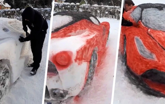 Ένα ζευγάρι από τη Λιθουανία, έφτιαξε ένα γλυπτό της La Ferrari από χιόνι, σε διαστάσεις κανονικού…