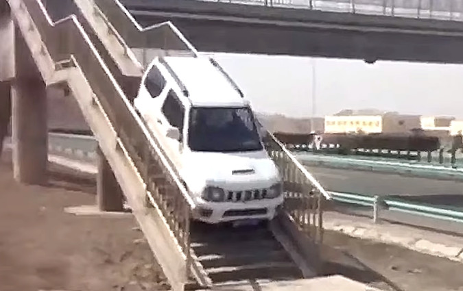 | DRIVE TeamSuzuki Jimny χρησιμοποιεί πεζογέφυρα για να κάνει αναστροφή [video]