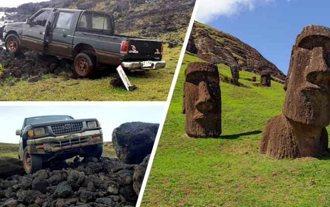 Pick-up έπεσε πάνω σε αρχαίο άγαλμα στο Νησί του Πάσχα