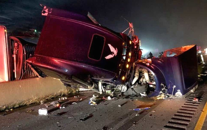 Ένα φορτηγό που μετέφερε αυτοκίνητα της General Motors βγήκε εκτός της πορείας του σε παγωμένο…