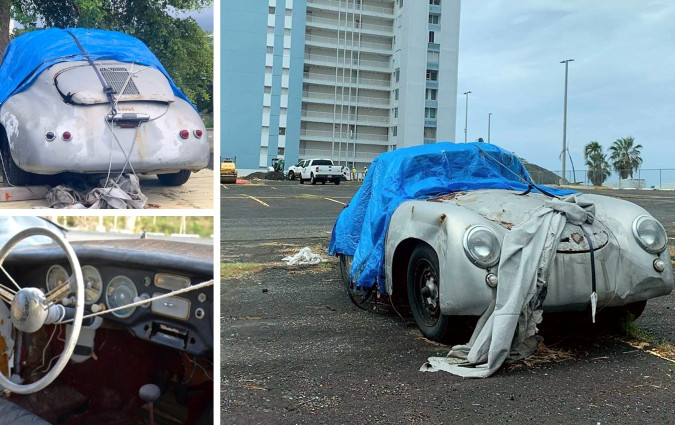 Μια εμφανώς ταλαιπωρημένη από τα στοιχεία της φύσης Porsche 356 βρίσκεται παρκαρισμένη εδώ και…