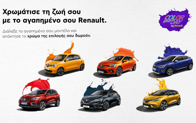 H Renault χρωματίζει την καθημερινότητά σου με τρόπο μοναδικό. Διαλέγεις το μοντέλο Renault…