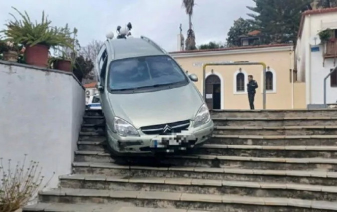 Ένας 92χρονος οδηγός μάλλον έχασε τον δρόμο και βρέθηκε να κατεβαίνει τα σκαλιά του Δημοτικού…