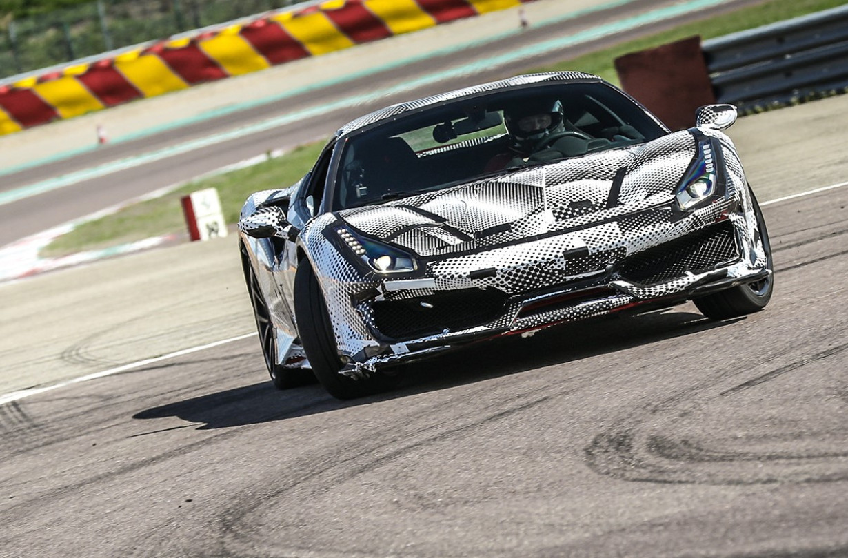 Η Pista που οδηγούμε είναι ένα πρωτότυπο προπαραγωγής. Γι’ αυτό και το ελαφρύ καμουφλάζ. Το οποίο βέβαια μοιάζει κάπως οξύμωρο, από τη στιγμή που το αυτοκίνητο αποκαλύφθηκε επίσημα στο πρόσφατο Σαλόνι Αυτοκινήτου της Γενεύης. Η Ferrari λέει ότι το αυτοκίνητο είναι κατά 90% έτοιμο για παραγωγή. Μόνο λίγο «κέντημα» στο καλιμπράρισμα του κινητήρα απομένει πριν δοθεί η τελική έγκριση.