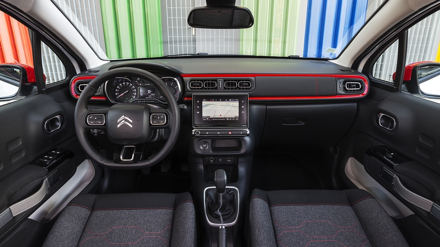 Η θέση οδήγησης του C3 είναι τοποθετημένη σχετικά ψηλά, χωρίς όμως να σε αναγκάζει να κάθεσαι σε όρθια στάση. Το τιμόνι ρυθμίζεται σε δύο κατευθύνσεις και ειδικά σε μήκος έχει εντυπωσιακά μεγάλο εύρος ρύθμισης. Τα νέα, μεγάλα πλήκτρα στο τιμόνι που πλαισιώνουν τις γνωστές ροδέλες είναι πολύ εύχρηστα, ενώ ο συμβατικός πίνακας οργάνων είναι ευανάγνωστος και πλήρης. Όσοι δεν αρέσκονται στον χειρισμό κάθε λειτουργίας του αυτοκινήτου μέσα από την οθόνη αφής 7,0’’, θα χαρούν να μάθουν ότι το infotainment πλέον δέχεται και φωνητικές εντολές. Ακόμη, ενσωματώνει το νέο, 3D σύστημα πλοήγησης Connect Nav. Ψάχνοντας για εργονομικά φάουλ θα σημειώναμε τη θέση των πλήκτρων για τις λειτουργίες Sport και Ice στην έκδοση με αυτόματο κιβώτιο, αφού είναι δυσπρόσιτα, πίσω από τις ποτηροθήκες, ενώ καταργούν και μια θέση για μικροπράγματα.