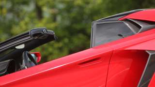 Συνήθως η μετατροπή ενός κουπέ σε ρόουντστερ αλλοιώνει το αρχικό σχήμα. Η Aventador αποτελεί σίγουρα εξαίρεση, αφού το αρχικό περίγραμμα παραμένει αναλλοίωτο. Τα αποκαλυπτήρια γίνονται με το χέρι, αλλά αρκεί ένα μόνο άτομο αφού η οροφή είναι χωρισμένη σε δύο κομμάτια, μικρά σε διαστάσεις και ελαφριά. Κατασκευασμένα από κάρμπον όπως όλα τα πάνελ του αμαξώματος και φυσικά το μονοκόκ σασί. Πρέπει να αφαιρέσεις πρώτα το τμήμα πάνω από τη θέση του οδηγού, να το αποθηκεύσεις στις ειδικές βάσεις του χώρου αποσκευών κάτω από το εμπρός καπό, και ύστερα να κάνεις το ίδιο με το δεύτερο.
