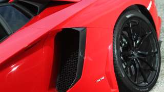 Ίσως την έβαλαν εκεί για να τονίσουν ακόμη περισσότερο τη λάγνα ομορφιά της Aventador, ειδικά σε αυτό το λαμπερό κόκκινο προς το πορτοκαλί χρώμα που αναδεικνύει τον πληθωρικό όγκο, αλλά και τη γράμμωση στις λεπτομέρειες. Την κοφτερή σαν λεπίδα βασική γραμμή, τους απειλητικούς σαν τις πύλες της αβύσσου διπλούς πλευρικούς αεραγωγούς, το τρομακτικό στην όψη diffuser και τα θηριώδη φρένα που λάμπουν μέσα στους τροχούς, φτιαγμένα θαρρείς από κάποιο πολύτιμο πέτρωμα ενός πλανήτη που δεν έχει ακόμη ανακαλυφθεί...