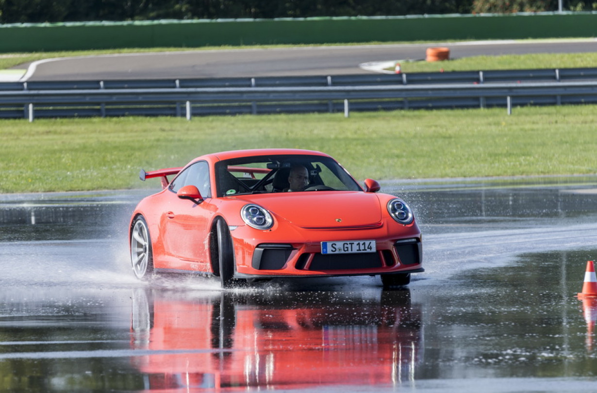 Η τελευταία άσκηση στο τιμόνι 911 GT3 προέβλεπε ένα τεχνητό σικέιν στο οποίο έπρεπε να προκαλέσεις το ξεκόλλημα της ουράς με τη μεταφορά βάρους, να την προλάβεις και να βγάλεις μια πάντα σε ένα τόξο μεγάλης ακτίνας, σημαδεύοντας όμως μια στενή πόρτα εξόδου. Η διαδικασία εξελίχθηκε σε σπαζοκεφαλιά, αποκαλυπτική για το πόσο ευαίσθητη είναι η 911 GT3 σε μικρές μεταβολές. Ενδεικτικό του πόσο ακραίο είναι το στήσιμο της, δίνοντας απολύτως κυριολεκτικό νόημα στον όρο «αγωνιστικό για το δρόμο».