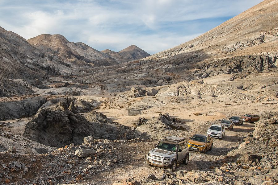 Εξ ορισµού, το DRIVE Trophy γίνεται µε αυτοκίνητα 4x4. Και, παραδοσιακά, µε τα νέα τετρακίνητα µοντέλα της αγοράς. Το πιο σηµαντικό από αυτά, τουλάχιστον από ιστορική άποψη, είναι το εντελώς καινούργιο Land Rover Defender. Εµείς το είχαµε στην έκδοση 110 µε το µακρύ µεταξόνιο και µε τον κορυφαίο εξοπλισµό First Edition. Άµεσα ανταγωνιστικό µοντέλο του Defender –αν υπάρχει– δεν ήταν διαθέσιµο, οπότε αναγκαστήκαµε να το «ζευγαρώσουµε» αντισυµβατικά µε το Ford Ranger Wildtrack. Σύµφωνοι, το διπλοκάµπινο pickup δεν έχει σχέση µε το πολυτελές «στέισον» Defender σε χαρακτήρα και τιµή, όµως στο Trophy το κύριο ζητούµενο είναι οι εκτός δρόµου δυνατότητες, κι εδώ υπήρχε έδαφος για αντιπαράθεση.