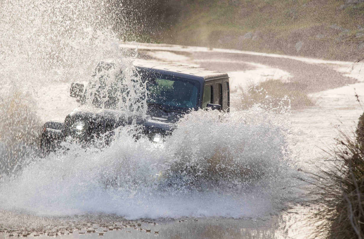 Το υβριδικό Wrangler σκαρφαλώνει σε σηµεία, όπως αυτό στην παραλία του Τυµπακίου µε τους µεγάλους αµµόλοφους. Εκεί που η πλειονότητα των τετρακίνητων µοντέλων αρκεί και µόνο να τα αντικρίσει για να βάλει όπισθεν και να αποχωρήσει µε βήµα ταχύ. Και περνάει µέσα από ποτάµια (υδάτινο κώλυµα βάθους 76 cm) χωρίς καν να επιλέξεις τα «κοντά»! Τόσο εύκολα, τόσο απλά, σαν να πρόκειται για µία ακόµη µέρα στο γραφείο.