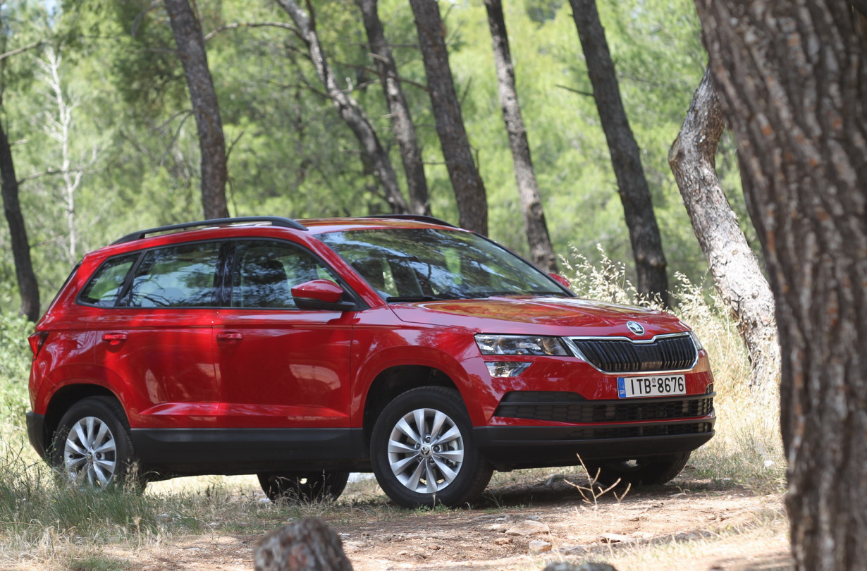Το κόκκινο Karoq που έχουμε στη διάθεσή μας είναι στη βασική έκδοση Ambition, οπότε ναι μεν €4.910 φτηνότερο, όμως χωρίς ασύρματο κλειδί, ηλεκτρικά αναδιπλούμενους καθρέφτες, αυτόματους καθαριστήρες και φώτα, αλλά και αισθητήρες παρκαρίσματος πίσω. Το τελευταίο μάλλον είναι και το στοιχείο που θα σας λείψει περισσότερο από όλα.
