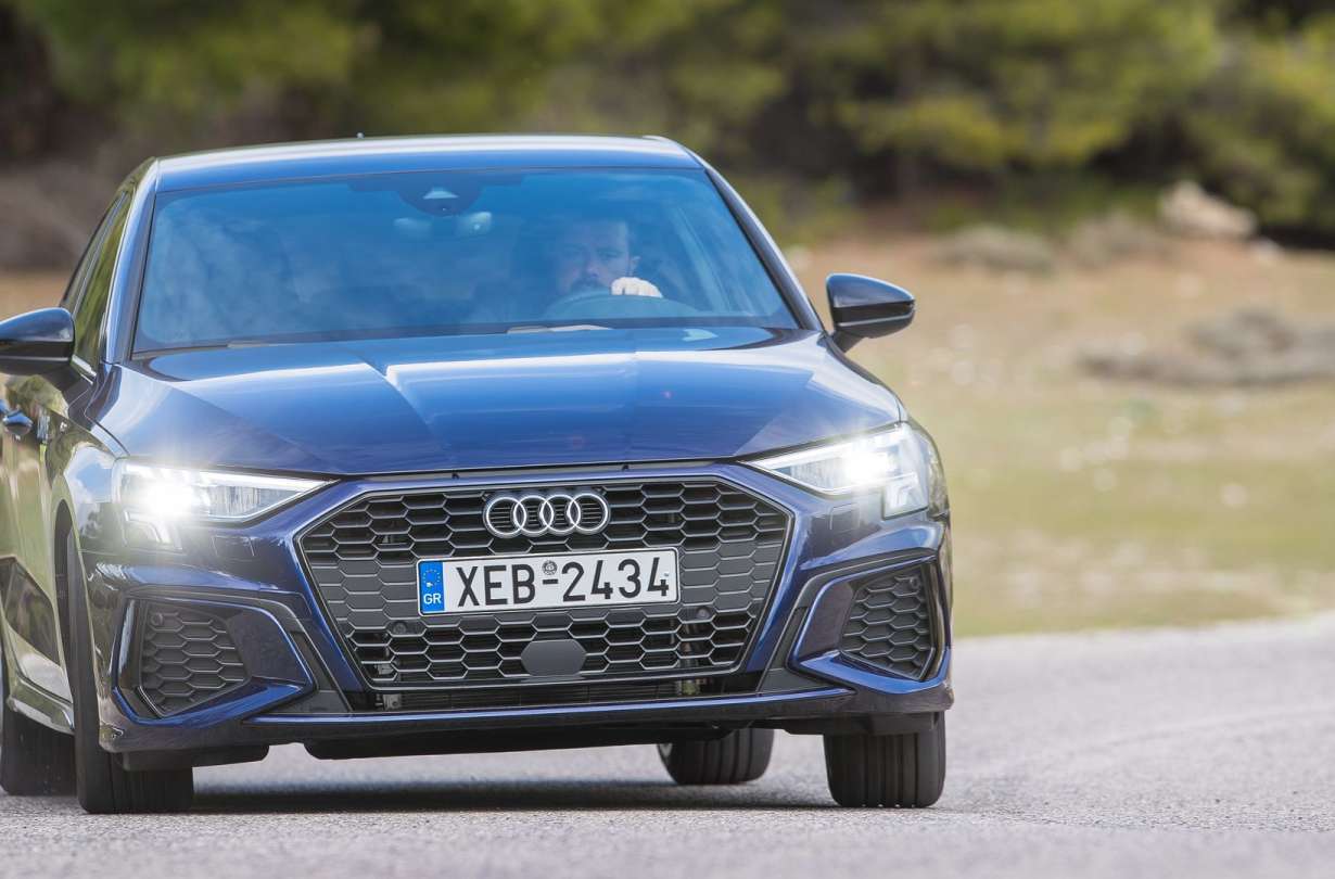 Παρά το γεγονός ότι η έκδοση 40 TFSI e S tronic είναι 240 kg βαρύτερη από την 35 TFSI MHEV με το αντίστοιχο κιβώτιο, το αυτί του plug-in hybrid συστήματος δεν ιδρώνει. Επιτυγχάνει 0-100 km/h σε μόλις 7,6” και τελική στα 227 km/h. Η συγκεκριμένη έκδοση δεν μπορεί να εφοδιαστεί με σπορ ανάρτηση, ακόμα και για τις εκδόσεις S line, αλλά διαθέτει στάνταρ πίσω ανάρτηση τεσσάρων συνδέσμων. Ο έλεγχος του αυξημένου βάρους είναι πειθαρχημένος και η άνεση κυμαίνεται σε πολύ υψηλό επίπεδο ακόμα και τους έξτρα τροχούς 18” που φορούσε το αυτοκίνητο της δοκιμής. Το γεγονός ότι το ρεζερβουάρ καυσίμου και η μπαταρία των 12V είναι κάτω από χώρου αποσκευών δεν επηρεάζει την ισορροπία του ακόμα και υπό πίεση. Τα φρένα έχουν καλή αίσθηση και σωστή αναλογικότητα, κάτι αρκετά σπάνιο για μοντέλο με σύστημα ανάκτησης ενέργειας.