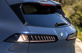 Στο πίσω μέρος, οι φωτιστικές μονάδες κυριαρχούν και πάλι, με δύο μεγάλες φωτεινές επιφάνειες που σταματούν ακριβώς στο ύψος του λογοτύπου. Η στενή καμπίνα και η έντονα κεκλιμένη οροφή μαρτυρούν ότι η αεροδυναμική αποτέλεσε βασικό άξονα εξέλιξης της iX3, κάτι που επιβεβαιώνει και ο ιδιαίτερα χαμηλός συντελεστής οπισθέλκουσας Cd 0,24.