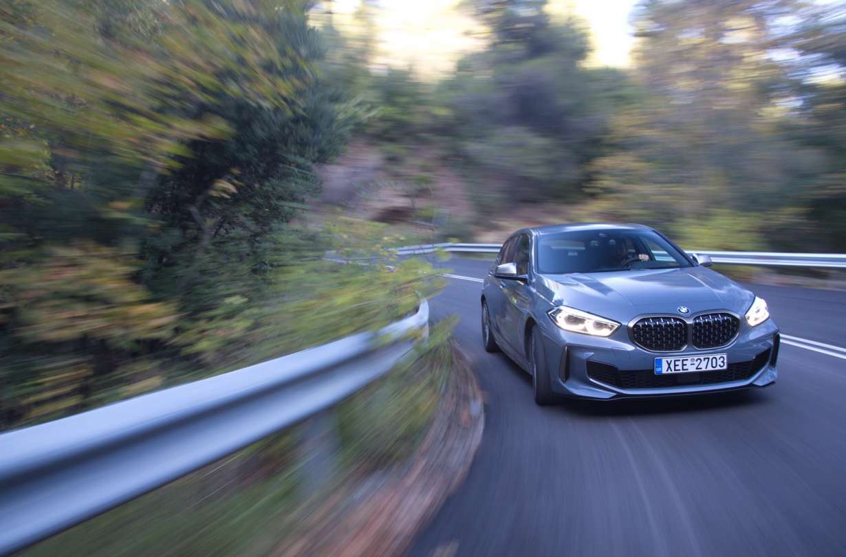 Αυτή τη φορά αφορµή είναι η «τσιµεντί» Μ135i που µέχρι πριν λίγο έµοιαζε να ασφυκτιά παρκαρισµένη κάτω από το γραφείο. Kαι που τώρα καταπίνει την εθνική µε κύλιση που η λέξη «κορυφαία» δεν την αποδίδει πλήρως.
