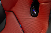 Ευτυχώς κι αναμενόμενα, εδώ δεν έχουμε να κάνουμε το υποκατάστατο για «M Sport Design», με το αυτοκίνητό μας να είναι βαμμένο στη μεταλλική απόχρωση, M Brooklyn Grey. Περνώντας λοιπόν στην καμπίνα από την πόρτα χωρίς πλαίσιο, μας υποδέχεται ένα 100% περιβάλλον M. Σπορ τιμόνι με κόκκινο δαχτυλίδι στο επάνω μέρος, ηλεκτρικά σπορ καθίσματα από συνθετικό δέρμα Veganza και Alcantara με φωτιζόμενο λογότυπο «///M», και φυσικά παντού μπλε και κόκκινες ραφές στα χρώματα του Motorsport. Η αντιλαμβανόμενη ποιότητα είναι υψηλή, χάρη στις μαλακές επιφάνειες, από τις πόρτες έως το ταμπλό.