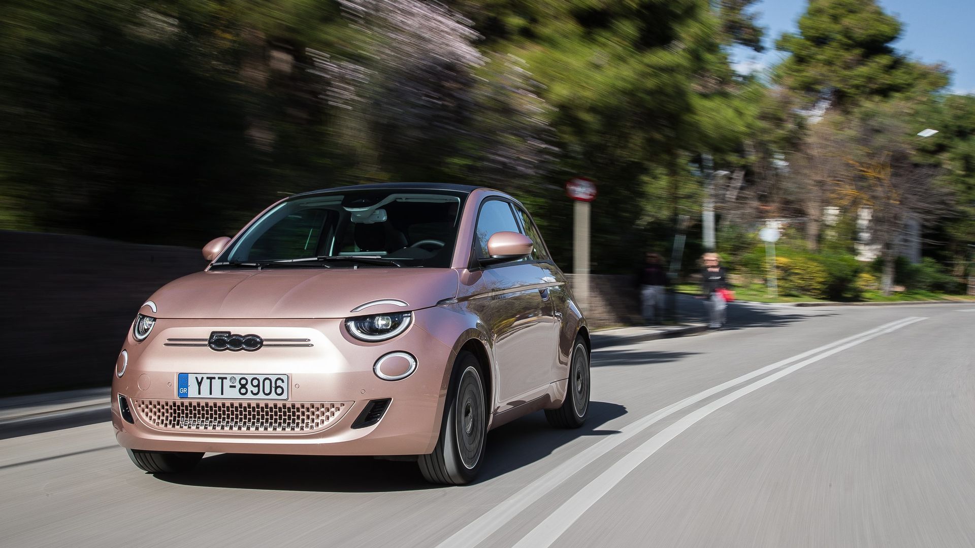 Σε επίπεδο εμφάνισης, μπορεί στις φωτογραφίες να μοιάζει με facelift του υπάρχοντος 500, όμως στην πράξη οι καθαρές, ενιαίες επιφάνειες με τους μικρούς αρμούς και τα διακριτικά φουσκωμένα φτερά δημιουργούν μια αρκετά διαφορετική εικόνα. Πιο upmarket, με σοφιστικέ λεπτομέρειες όπως είναι τα φλας-πτερύγια που εξέχουν στο πλάι του καπό και οι χωνευτές χειρολαβές, με κρυφό πλήκτρο για το άνοιγμα της πόρτας. Το πολύ ιδιαίτερο χρώμα Rose Gold του αυτοκινήτου της δοκιμής, αλλά και όλα τα άλλα βαθιά και πολύ ξεχωριστά διαθέσιμα χρώματα, ενισχύουν αυτή την εντύπωση.