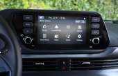 Ένα μοναδικό χαρακτηριστικό για την κατηγορία είναι ο ψηφιακός πίνακας οργάνων 10,25", ο οποίος μάλιστα είναι στάνταρ σε κάθε ήπια υβριδικό i20. Αλλάζει χρώμα ανάλογα με το επιλεγμένο πρόγραμμα οδήγησης, με ένα εντυπωσιακό εφέ για τη μετάβαση. Όμως δεν προσφέρει μεγάλη ελευθερία διαμόρφωσης στην εμφάνιση, ενώ τη νύχτα αρκετοί θα ψάξουν πώς να μειώσουν τη φωτεινότητά του λίγο παραπάνω. Η οθόνη 8" του infotainment είναι επίσης στάνταρ, έχει καλή ευκρίνεια και ενσωματώνει το γνώριμο λογισμικό της Hyundai που προσφέρει εύκολο χειρισμό με ελάχιστες εξαιρέσεις, όπως π.χ. την αναζήτηση και αποθήκευση σταθμού που απαιτεί αρκετές κινήσεις.