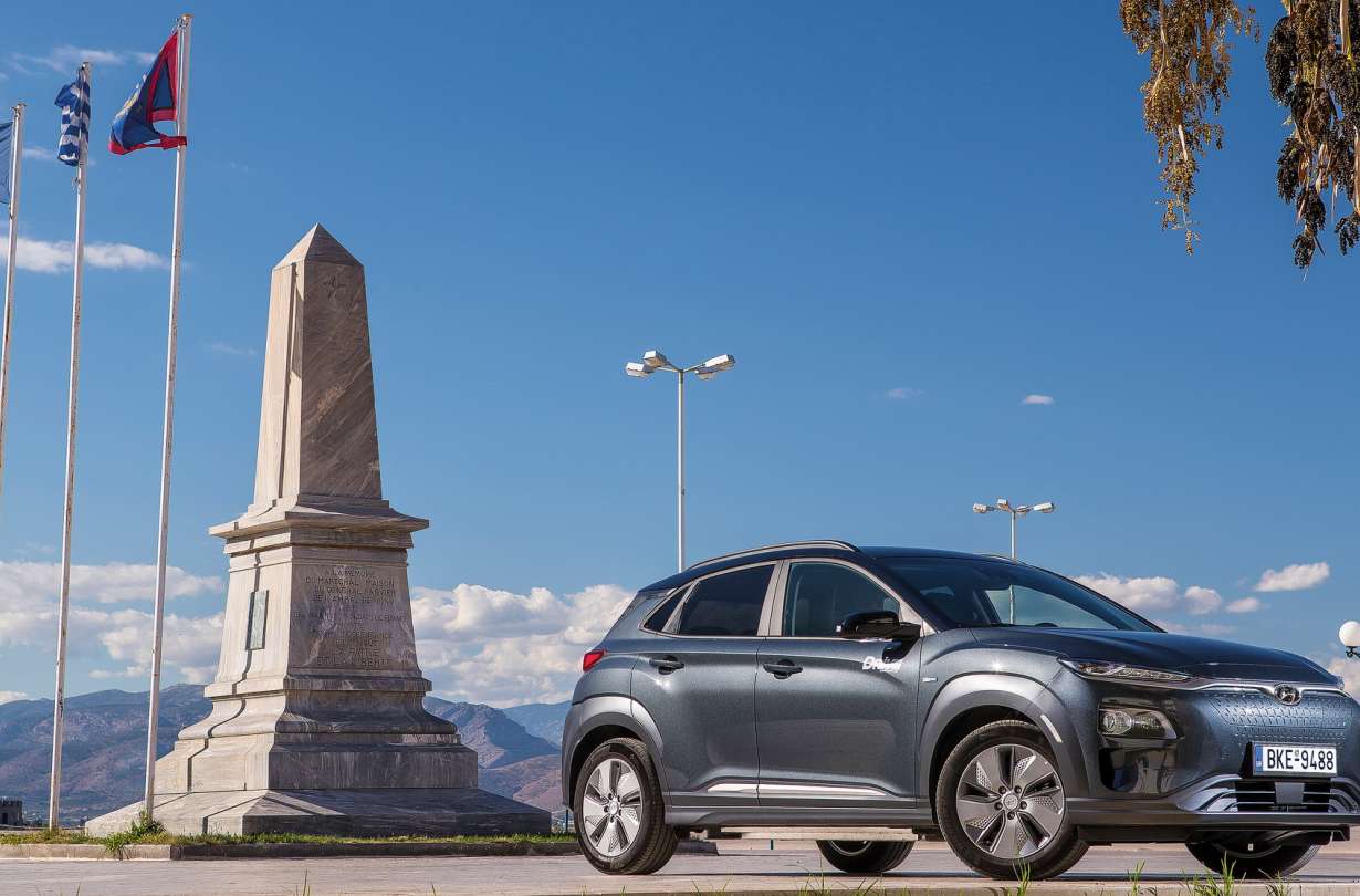 Ωστόσο η αλήθεια είναι τελείως διαφορετική, αφού ο σύγχρονος ηλεκτρικός κινητήρας μόνιμου μαγνήτη αποδίδει 204 PS και 395 Nm που σε κολλάνε στο κάθισμα εάν το πρόγραμμα λειτουργίας είναι το Comfort ή το Sport. Μετά την έξοδο προς Επίδαυρο κάναμε έξυπνη εκμετάλλευση της φόρας μας στις στροφές, οπότε χωρίς να καθυστερούμε η κατανάλωση παρέμενε κολλημένη στα 15 kWh/100 km. Αν και το βάρος των 1.700 kg είναι σημαντικά υψηλότερο από των υπόλοιπων Kona, δύσκολα θα το καταλάβεις ενώ στρίβεις.