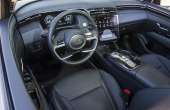 Αντίστοιχα επαναστατική είναι και η εικόνα του ταμπλό, το οποίο είναι συμμετρικά χτισμένο ως προς μια κεντρική κονσόλα που στις αυτόματες εκδόσεις δεν έχει λεβιέ αλλά κουμπιά για τον έλεγχο του κιβωτίου. Το αποτέλεσμα είναι πιο ιδιαίτερο και εντυπωσιακό από των χειροκίνητων Tucson, ενώ συνοδεύεται και από περισσότερους αποθηκευτικούς χώρους. Ο οδηγός κάθεται σε άνετη θέση και αντλεί πληροφορίες από έναν ψηφιακό πίνακα οργάνων 10,25” που είναι στάνταρ σε όλα τα Tucson. Έχει δε αρκετές δυνατότητες διαμόρφωσης, δείχνοντας μάλιστα ακόμα και γράφημα με την κατανομή της ροπής σε κάθε τροχό στις τετρακίνητες εκδόσεις.