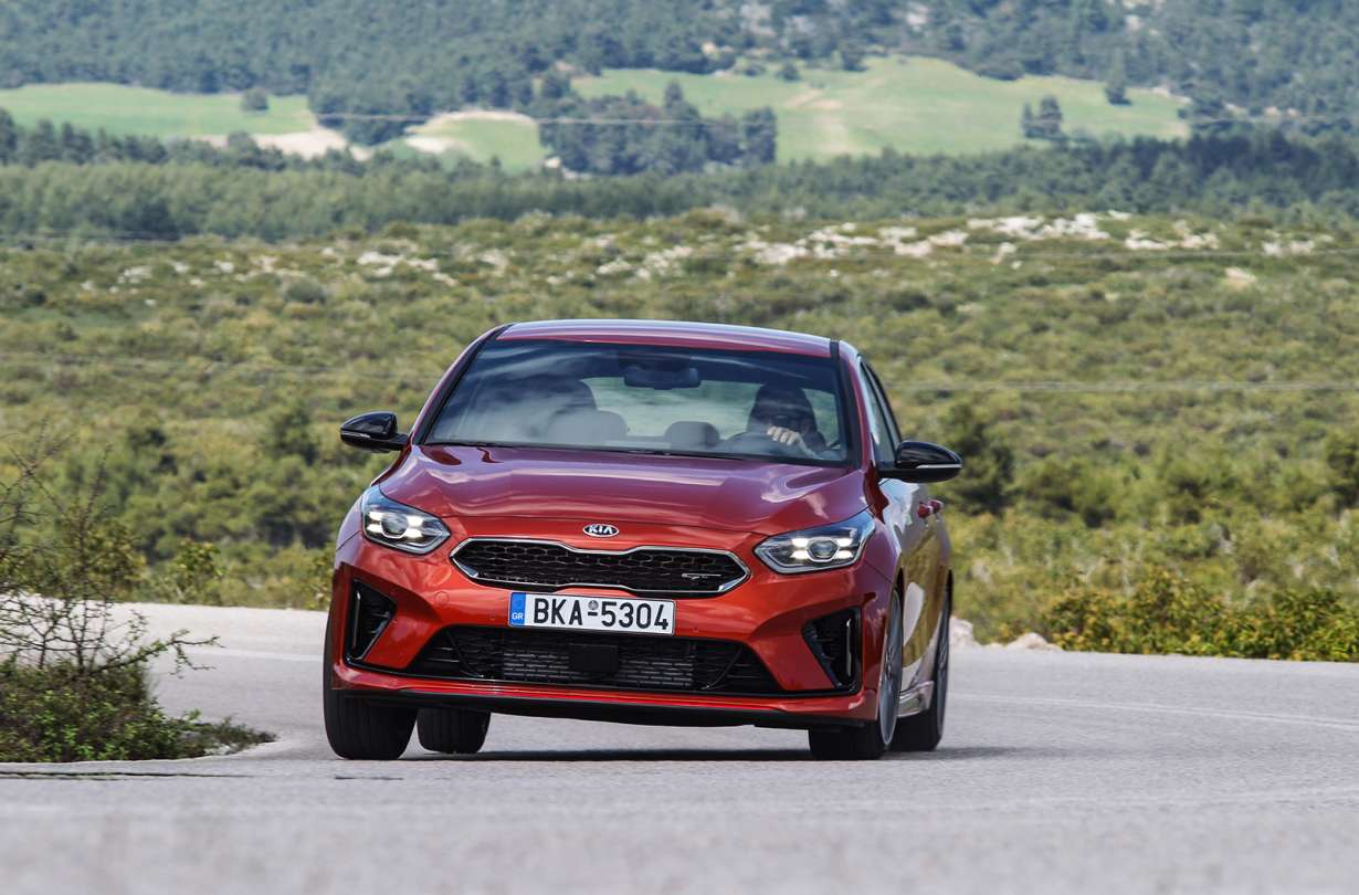 Καταλαβαίνεις τη διαφορά αµέσως, κουµαντάροντας ένα αυτοκίνητο πολύ πιο ζωντανό από τα απλά Ceed, πρόθυµο να σου κάνει το κέφι µε µια µικρή γωνία στην ουρά µέχρι να επέµβει το σύστηµα ευστάθειας. Γέρνει ανεπαίσθητα και δεν είναι ποτέ νευρικό στις αλλαγές κατεύθυνσης, διατηρώντας τον απόλυτο έλεγχο ανεξάρτητα από τη χάραξη και την ποιότητα του δρόµου.