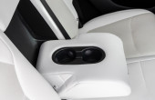 Η καμπίνα του ανανεωμένου Tesla Model Y εξελίχτηκε διακριτικά, με νέα υλικά εμπνευσμένα από το ανανεωμένο Model 3. Φινιρίσματα αλουμινίου, παχιές επενδύσεις στα σημεία των γονάτων, εξατομικεύσιμος ambient φωτισμός και ανασχεδιασμένη κεντρική κονσόλα με συρόμενο κάλυμμα με αλουμινένιες λαβές.