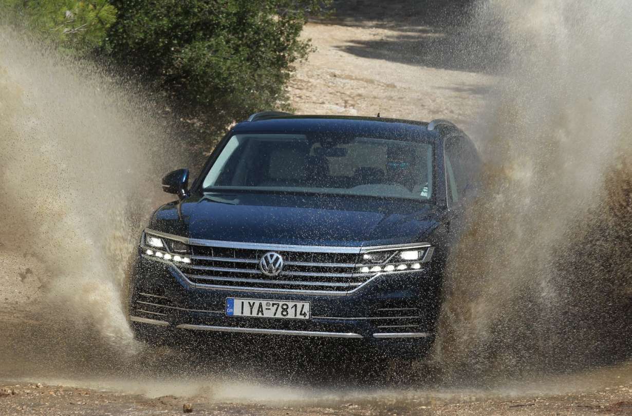 Τα Touareg που έρχονται στη χώρα μας έχουν στον βασικό εξοπλισμό το εκτός δρόμου πακέτο που περιλαμβάνει μεγαλύτερα ρεζερβουάρ καυσίμου/AdBlue και προστατευτικές ποδιές, ενώ το Drive Profile έχει εμπλουτιστεί με λειτουργίες Off-road Auto, Sand, Gravel και Off-road expert, που επεμβαίνουν στην τετρακίνηση, στον κινητήρα, στο τιμόνι, στο κιβώτιο, στα φρένα και στα ηλεκτρονικά βοηθήματα. Η δύναμη κατανέμεται μέσω ενεργού κεντρικού διαφορικού στον εμπρός και τον πίσω άξονα. Ανάλογα με τις συνθήκες, έως το 70% της ροπής μπορεί να φτάσει στους εμπρός τροχούς και το 80% στους πίσω. Σε συνδυασμό με την ικανή απόσταση από το έδαφος και τους λογικού μήκους προβόλους, οι εκτός δρόμου δυνατότητες που προσφέρει είναι από τις δυνατές της κατηγορίας. Η αερανάρτηση μπορεί να αυξήσει την απόσταση από το έδαφος κατά 7 cm (συνολικά 30 cm) και λειτουργεί υποδειγματικά στο χώμα.